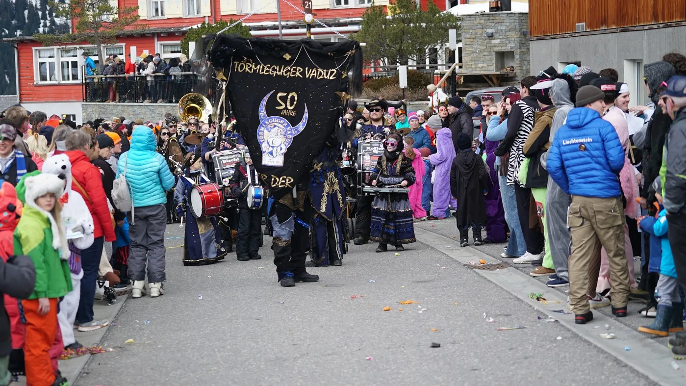 Wie immer dicht gedrängt feierten viele Bärgaar, Touristen und auch Besucher aus dem restlichen Liechtenstein einen bunten und lauten Fasnachtsumzug in Malbun.
