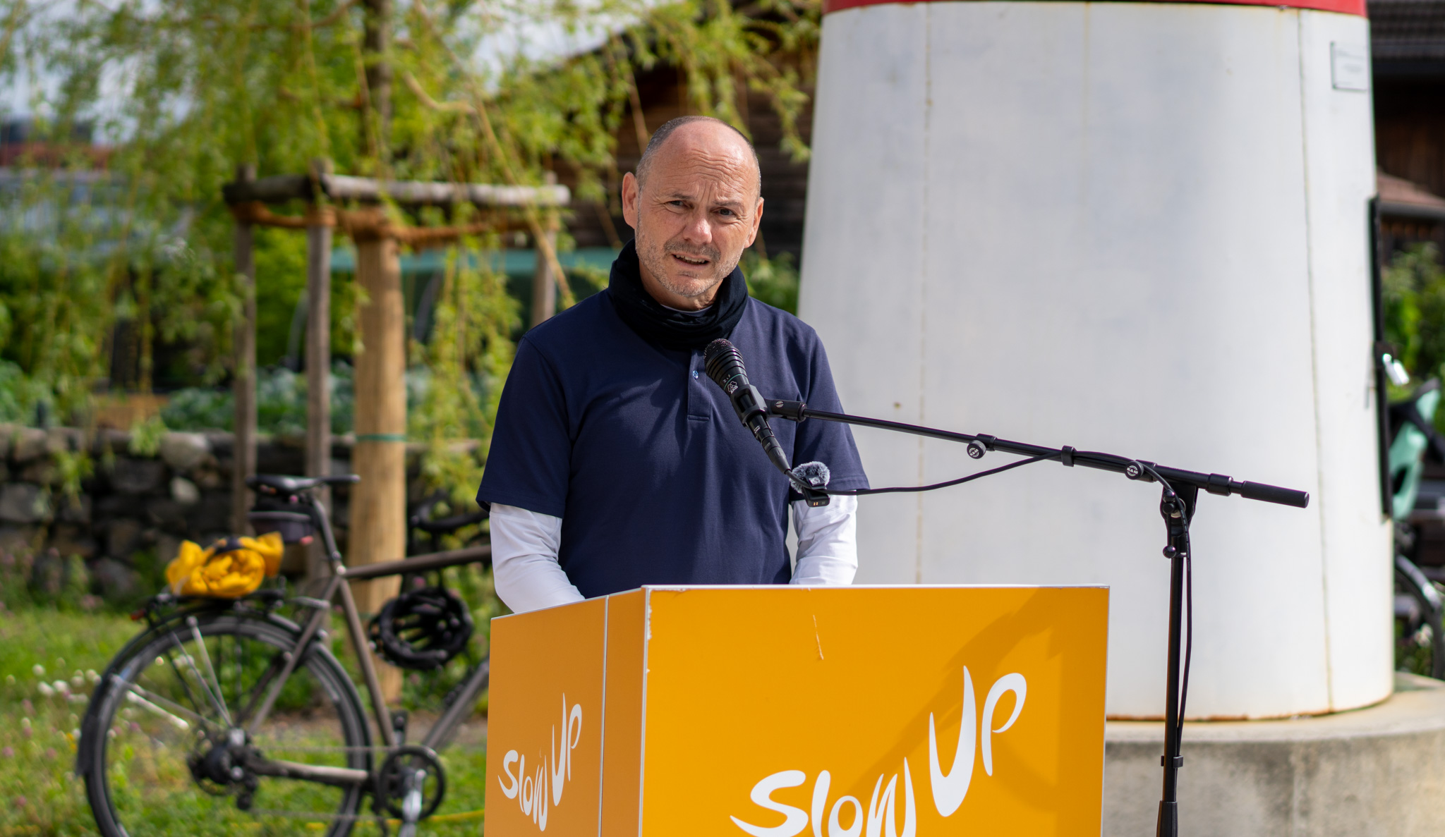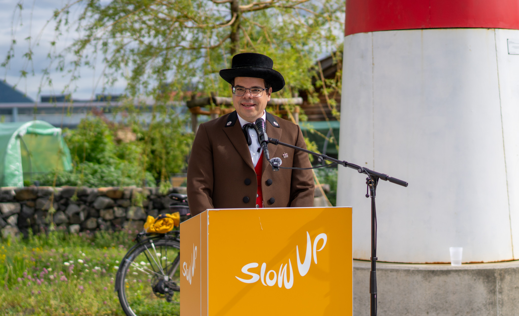 Für Vorsteher Christian Öhri war es eine besondere Ehre, dass der Startschuss erstmals in Ruggell erfolgte. Der Musikverein Ruggell sorgte für die musikalische Umrahmung der Eröffnung. Öhri sprach von einer gelungenen Verbindung zwischen Sport und Kultur: «Der sportliche Anlass, der SlowUp trifft auf Kultur und während der Musikverein und das Küefer-Martis-Huus schon zur Tradition gehört, ist der SlowUp als Sportveranstaltung auf dem besten Weg dazu.«