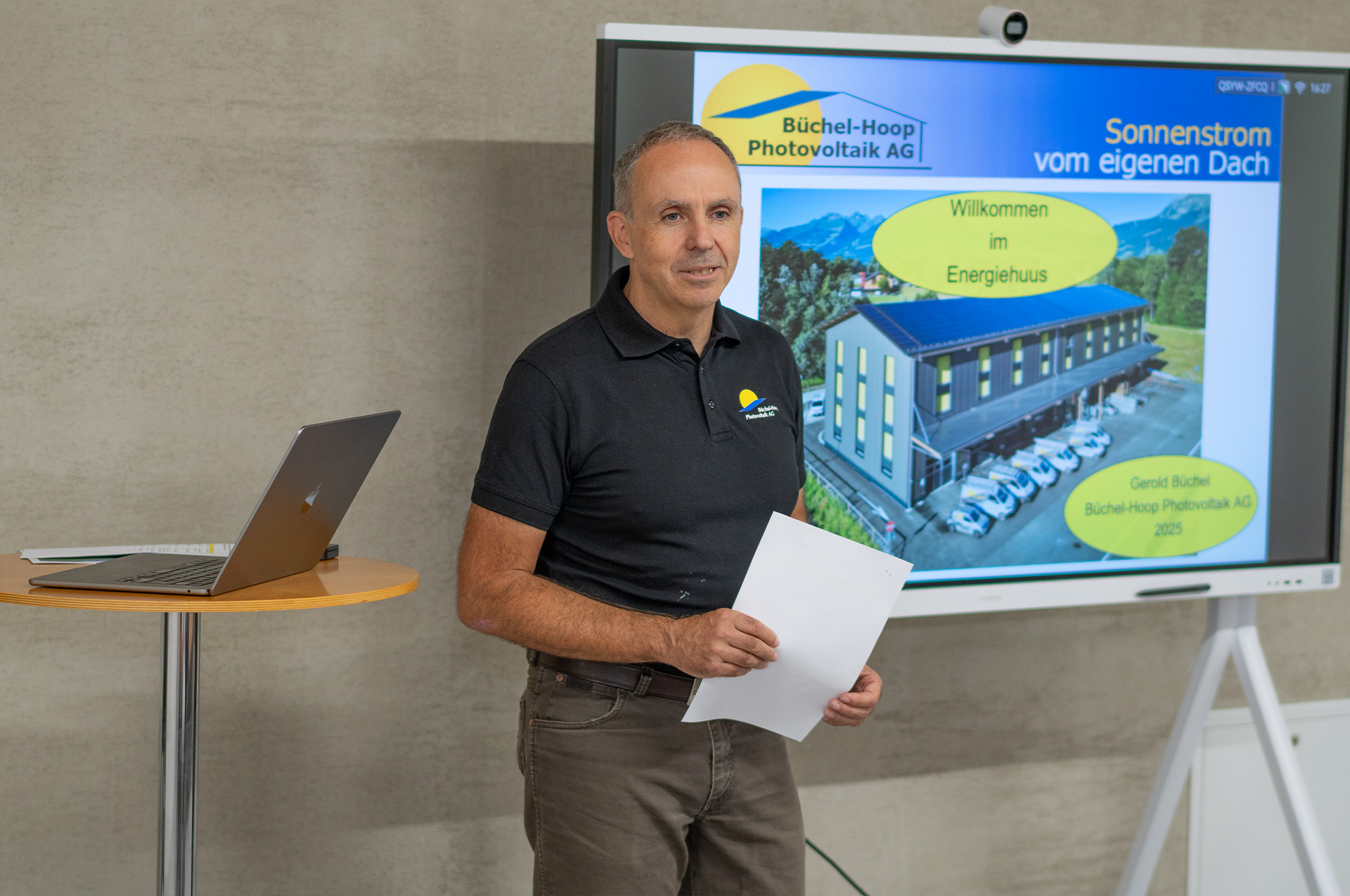 Geschäftsführer Gerold Büchel schilderte den beeindruckenden Werdegang des Unternehmens. Die Entscheidung für den Neubau fiel im Dezember 2020, als das erste Konzept entwickelt wurde. Das neue Gebäude repräsentiert nicht nur räumliches Wachstum, sondern vor allem die technologische Entwicklung der Branche. „In den ersten zehn Jahren unserer Firmengeschichte ging es hauptsächlich um die Installation von Modulen auf Dächern. In den letzten drei Jahren hat sich die Komplexität stark weiterentwickelt«, erklärte Büchel.
